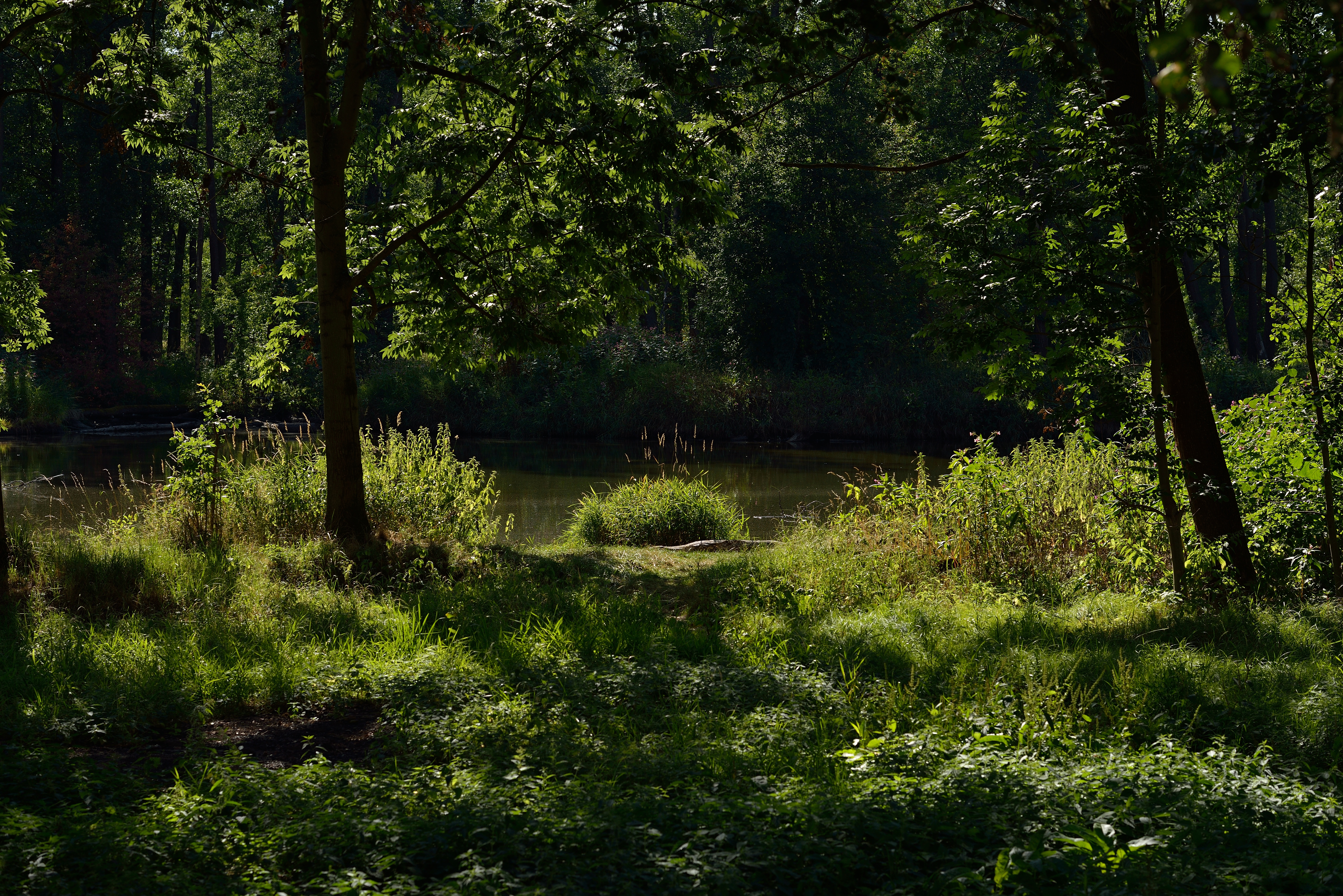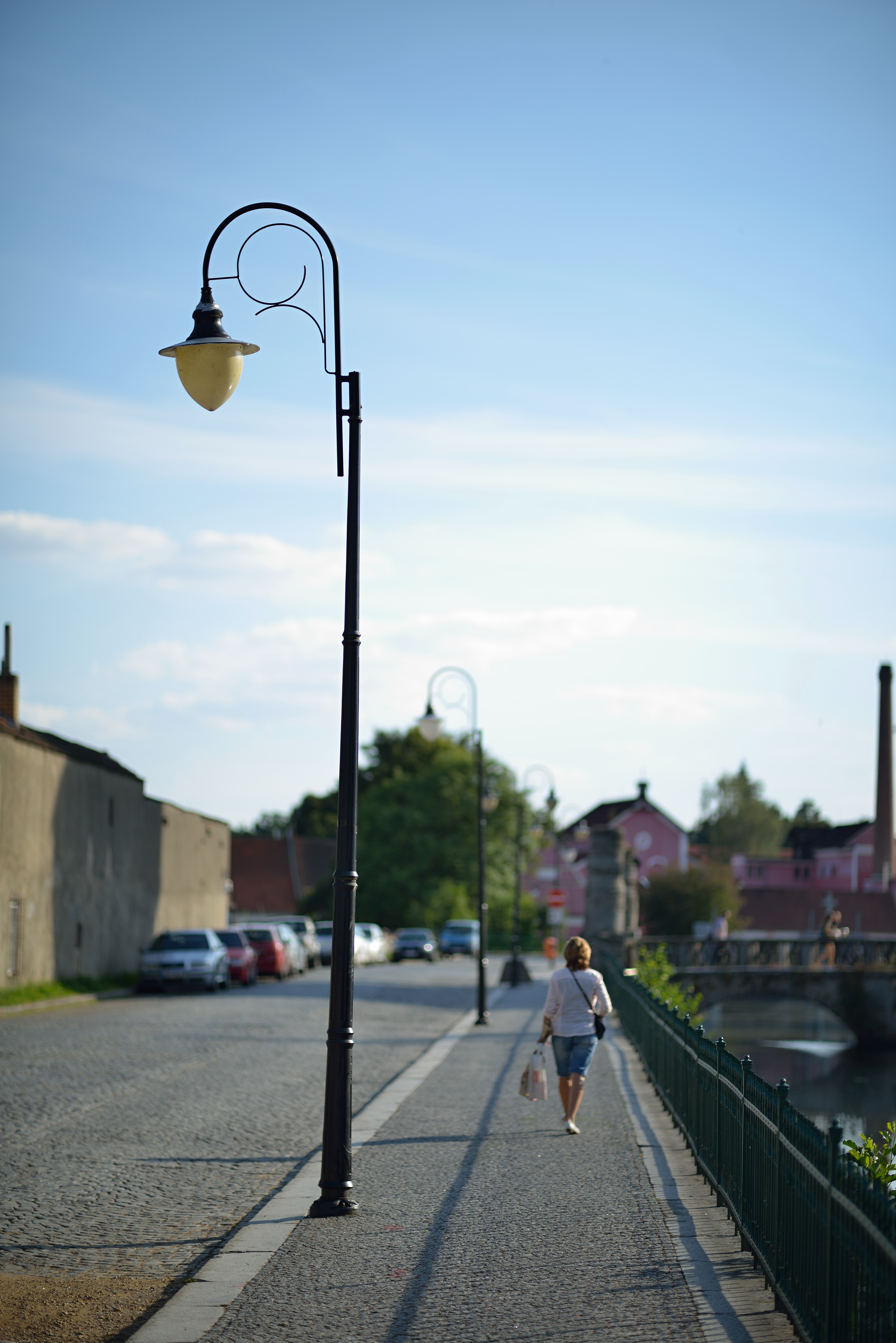 scénu si změříte Použil jsem režim c). Prohlédl jsem si scénu slunného odpoledne, zavzpomínal na analogovou (čili filmovou) éru a při ISO 100 určil expozici čas 250, clona 8. Na fotoaparátu nastavuji 100 ISO a čas 1/250 sekundy. Na objektivu nastavuji clonu 1,2, aby mi hledáček zůstal světlý, snažím se zaostřit a oceňuji, že správné zaostření mi ukazují diody v hledáčku. Oddaluji fotoaparát od oka, abych na clonovém kroužku nastavil proti tečce clonu 8. Opět přikládám fotoaparát k oku a exponuji snímek - zrada, při uchopení objektivu zespodu jsem si hnul s ostřícím kroužkem. Tak znovu - posun clony na 1.2, zaostření, přesunutí na clonu 8 a prásk, první snímek je na světě. Kontroluji snímek na displeji ve 100% zvětšení - expozice OK, ale snímek neostrý. Druhý pokus. Při třetím jsem pochopil, že dioda signalizující správné zaostření je mi k ničemu - svítí totiž stále, i když jemně ostřením otáčím v určitém intervalu - a ten je moc "široký". Nevadí, budu ostřit přes režim živého náhledu přes zadní displej. Zrada - neudržím fotoaparát v ruce tak klidně, abych spolehlivě zaostřil, chtělo by to stativ. Nemám s sebou stativ. Volím druhou možnost - pořídím více snímků s jemným posunem ostřícího kroužku, to by bylo, abych se nestrefil. Kolem clony 8 a výše to ještě šlo, vešel jsem se jakž takž do hloubky ostrosti. Ale na clonu 1,2 jsem klidně pořídil 6 snímků s různým nastavením a ostrý nebyl žádný. Nevadí, žádný učený z nebe nespadl. Po 15 minutách mám systém - přejedu pásmo ostrosti a jemně se vrátím - hle, pravděpodobnost správného zaostření se zvýšila. Při ostření na vzdálenost do 3 metrů a clonu 1,2 nehýbám ostřícím kroužkem, ale posunuji se celým tělem dopředu a dozadu - hloubka ostrosti na této cloně je totiž tak malá, že to stačí, abych získal různě ostré záběry. Připadám si, že fotím makro, kde je tento způsob fotografování hojně používán. Mám první dobře zaostřený snímek a žasnu - i na clonu 1,2 ve středu snímku vynikající ostrost! Akorát časy se již šplhají k 1/4000 sekundy, jednou dokonce na 1/6000 (ještě, že D800 má 1/8000 sekundy:).