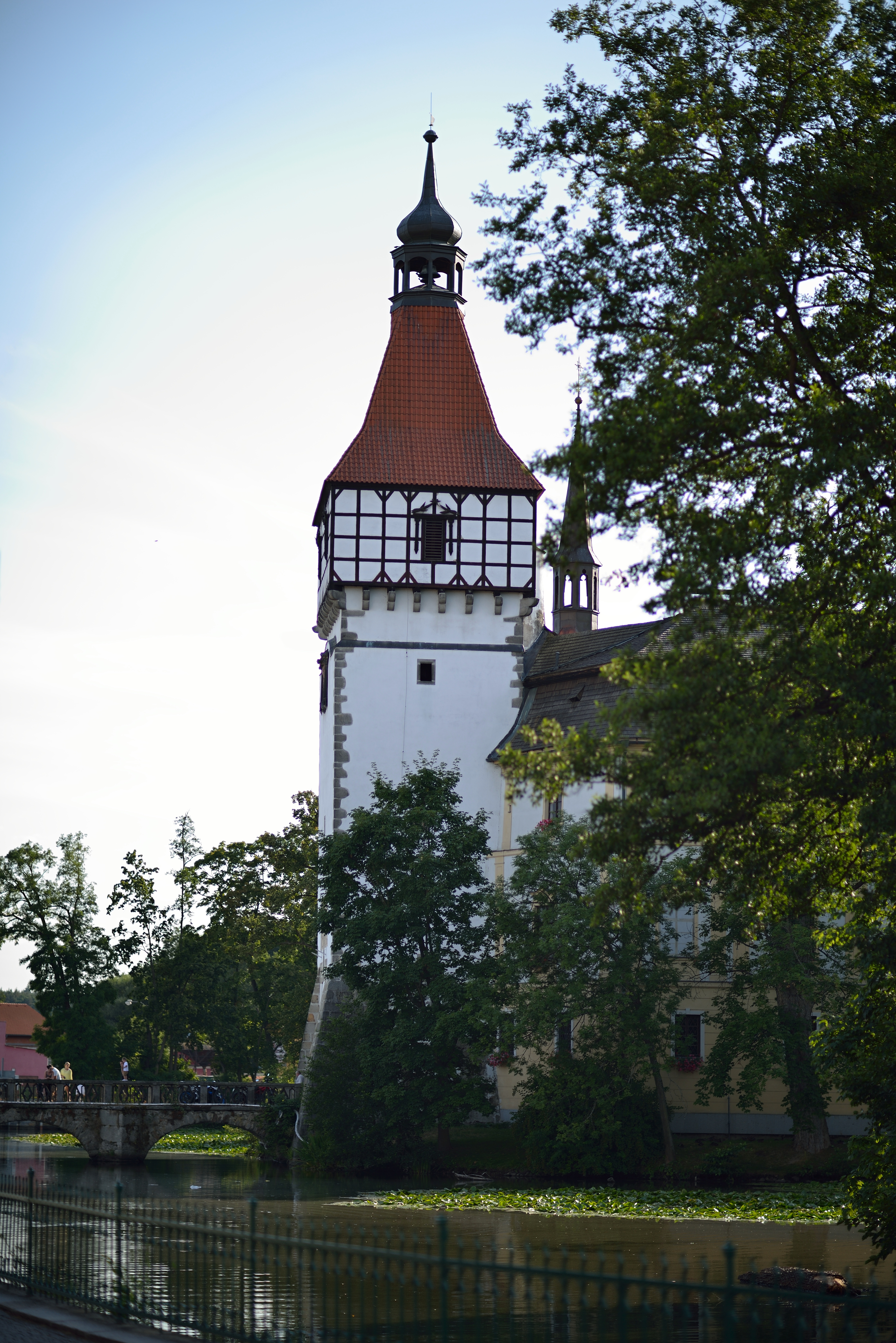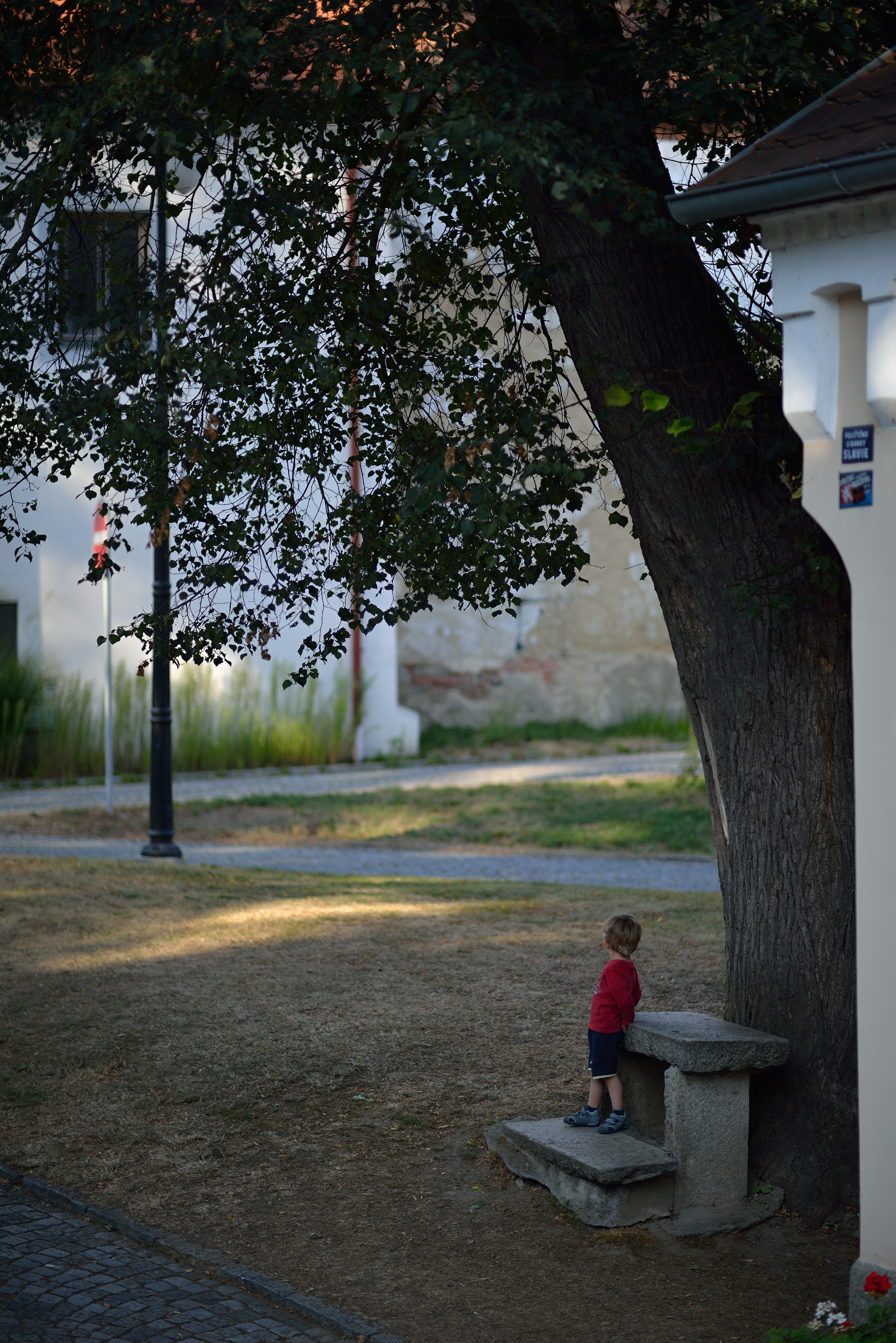 Cvak - celý displej na mne bliká - sice jsem si čas správně vypočetl na základě clony, ovšem clonu zapomínám na objektivu přesunout na vypočtenou hodnotu. Začíná se mi při ostření stýskat po mé Praktice na kinofilm - v hledáčku jsem na matnici měl ostřící klín, který posunem svislic ukazoval správné zaostření - navíc při něm střed matnice zprůhledněl. To by byla krása, nemusel bych stále laborovat s ostřením. Kolem mne se srocují turisté a hledí stejným směrem jako já a připravují si fotoaparáty. Chápu je. Když vidíte někoho, jak fotí 20x po sobě stromy v zámeckém parku, tak tam MUSÍ být něco zajímavého. Nic zajímavého tam nebylo, nemohl jsem správně zaostřit. Pár slabších jedinců si pro jistotu cvaklo keře ve směru mého pohledu a doma budou hledat chudáci na monitoru něco převratného, třeba lochnesku nebo vzácného ptáka. Po pořízení 200 snímků to vzdávám, protože mne od neustálé snahy o správné zaostření bolí pravé oko. A také mi od stálého prohlížení dochází baterie. Je čas se vrátit k počítači, vymazat většinu nesprávně zaostřených snímků, opravit v Capture NX2 expozici (párkrát se neplánovaně schovalo či naopak vysvitlo slunce) a podělit se s vámi o snímky. Ale napřed jedna malá úvaha. Celou dobu, co jsem fotografoval jsem si říkal, který blázen si tenhle objektiv může koupit, když musím nastavovat a hlídat tolik věcí. Ale když nad tím uvažuji v klidu večera, napadla mne jiná věc. Tento objektiv vás naučí zvolnit. Žádné bezhlavé cvakání. Musíte si vybrat scénu, zaostřit na místo, které má být ostré, stanovit expozici a vyfotit. A zkontrolovat výsledek. Žádný režim P + ISO AUTO, žádné automatické ostření, žádné ostřící body. Ruční stanovení clony si vynutí úvahu nad hloubkou ostrosti. Zkrátka tato konstrukce je ideální typ objektivu pro začátečníky, aby si uvědomili všechny souvislosti správné expozice. Také se současně musí fotograf naučit rozumět závislosti clony, času a ISO - ať již systémem pokus - omyl (zdlouhavé) nebo si bude muset něco přečíst, vyzkoušet, přečíst, vyzkoušet, zeptat se, vyzkoušet, přečíst atd., až mu to všechno "vejde do krve". Ale to jen tak na okraj, zde jsou ty snímky: Fotoaparát Nikon D800, RAW + převod do JPG v CNX-2 s úpravou expozice a se zapnutým odstraněním aberace. Fotografováno z ruky. A pokud by vás snad udivilo, že v EXIFu jsou mimo údajů o času expozice i informace o cloně a ohniskové vzdálenosti (které objektiv neposkytuje), tak vězte, že jsem je tam dodal ručně:)