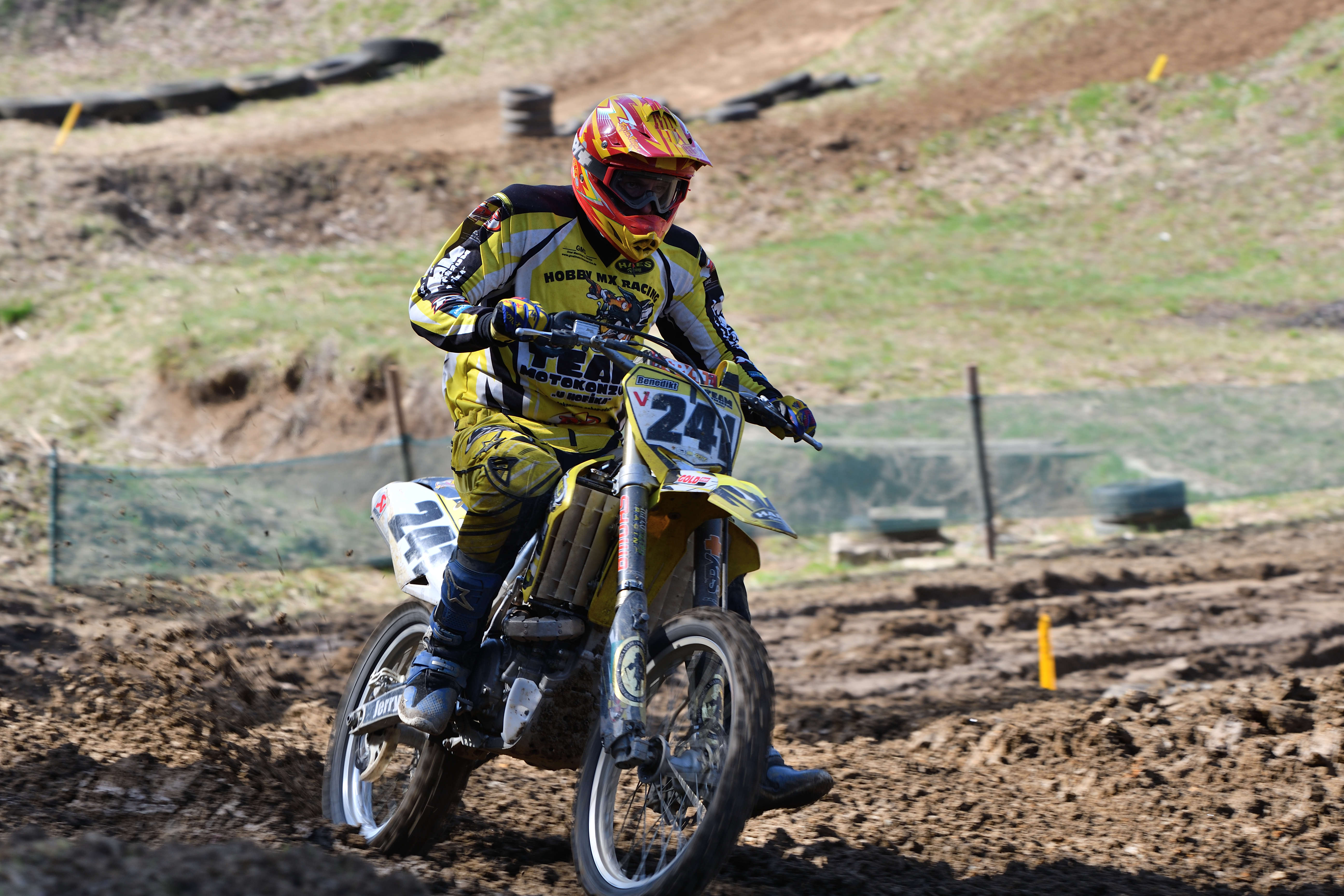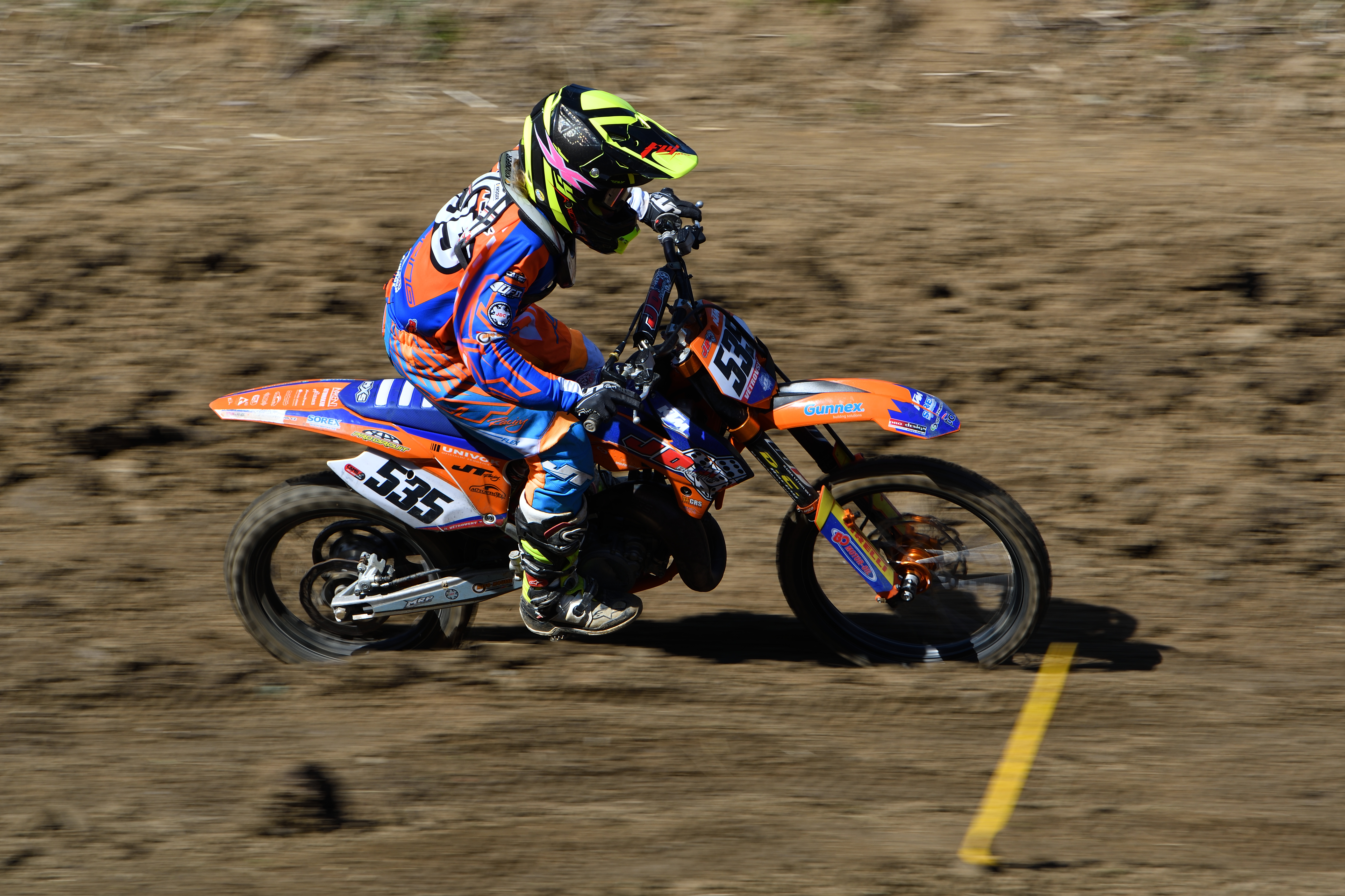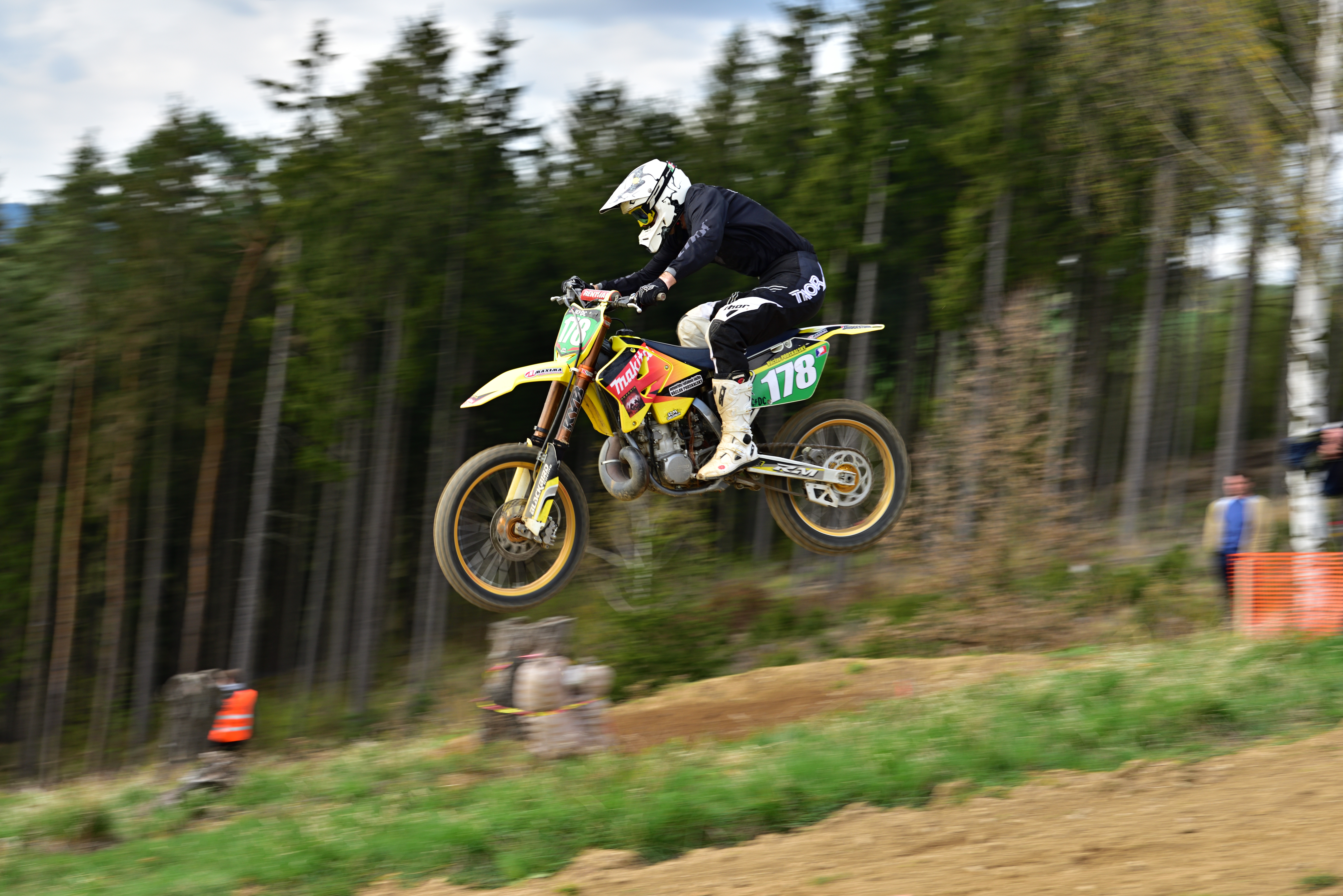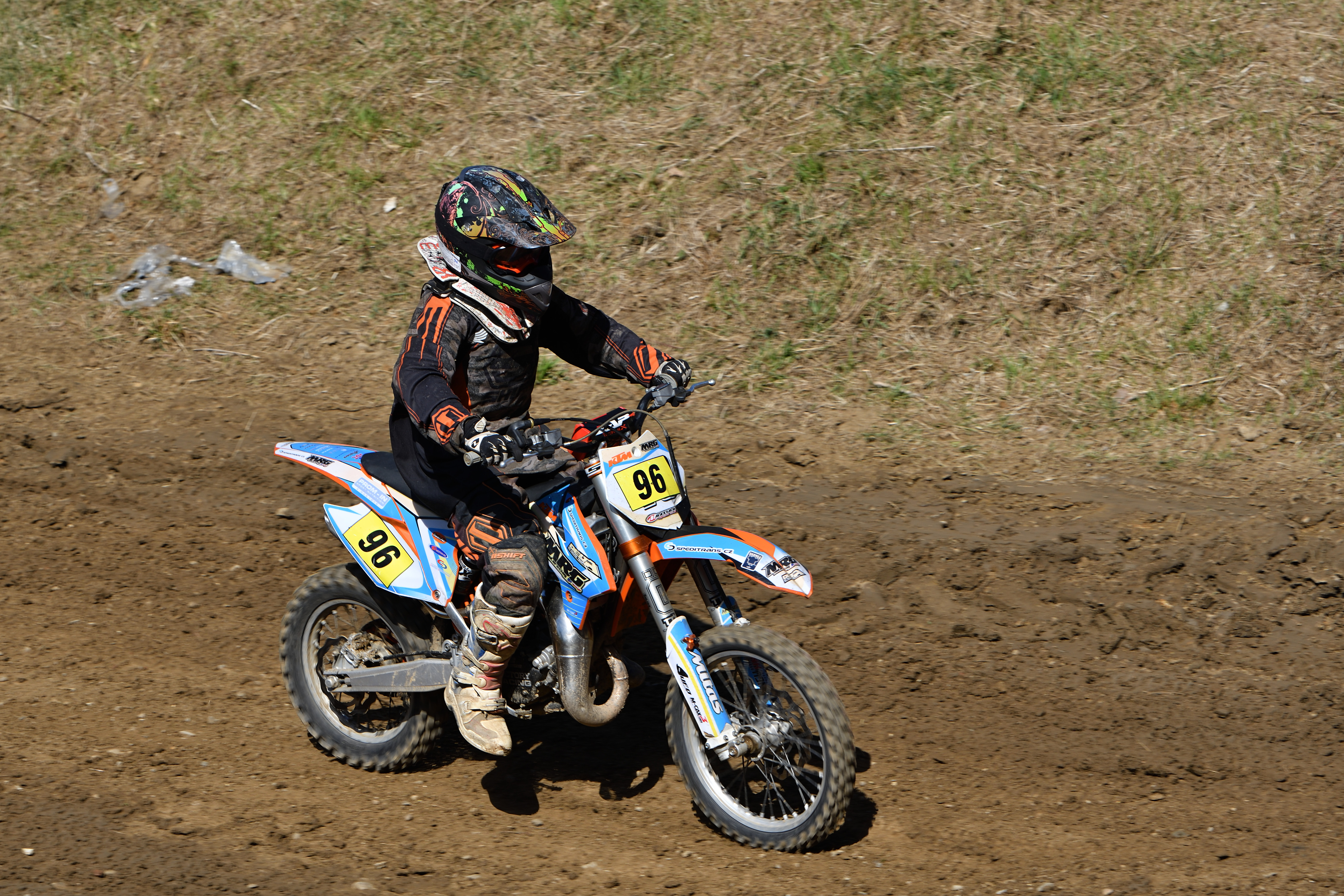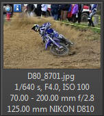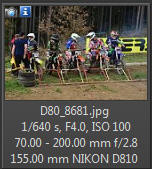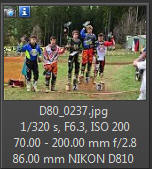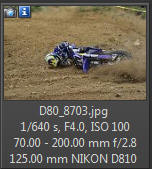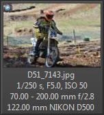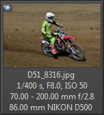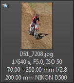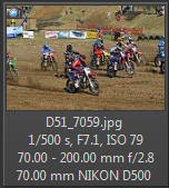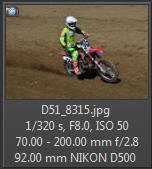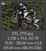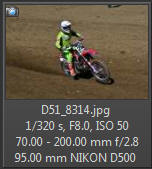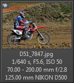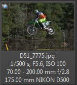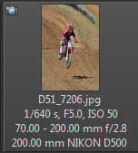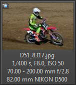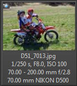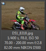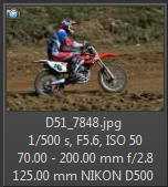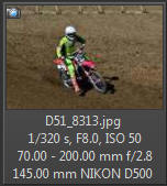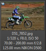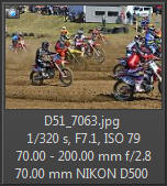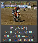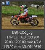 Vím, že úplně dokonalé nejsou, ale na to, že nejsem žádný specialista na fotky ptáků, pokládám většinu výsledků za velmi dobrou a v režimu průběžného ostření si objektiv vedl skutečně velmi, velmi dobře. Snímky pořízené Nikonem D500 Přepočtená ohnisková vzdálenost na menší snímač (1,5x) je tedy 105 - 300 mm. Po lovech ptáků jsem hledal jiné rychle se pohybující objekty, až jsem našel - motokros. Ostřící režim nastaven na AF-C, režim 3d, typ stabilizace 2. Po pár snímcích jsem zjistil, že lepších výsledků dosáhnu přepnutím na ostřící režim "nejbližší objekt". Vždy jsem použil nejrychlejší sekvenční snímání a sledoval objekt po celou dobu tisknutí spouště. Když odečtu svou nešikovnost, tak počet podařených snímků, tj. snesitelně ostrých, se pohyboval kolem 50%. Ale za to nemůže objektiv, ale fotograf. Pokud jsem správně zachytil první snímek, byly již všechny ostatní ostré.