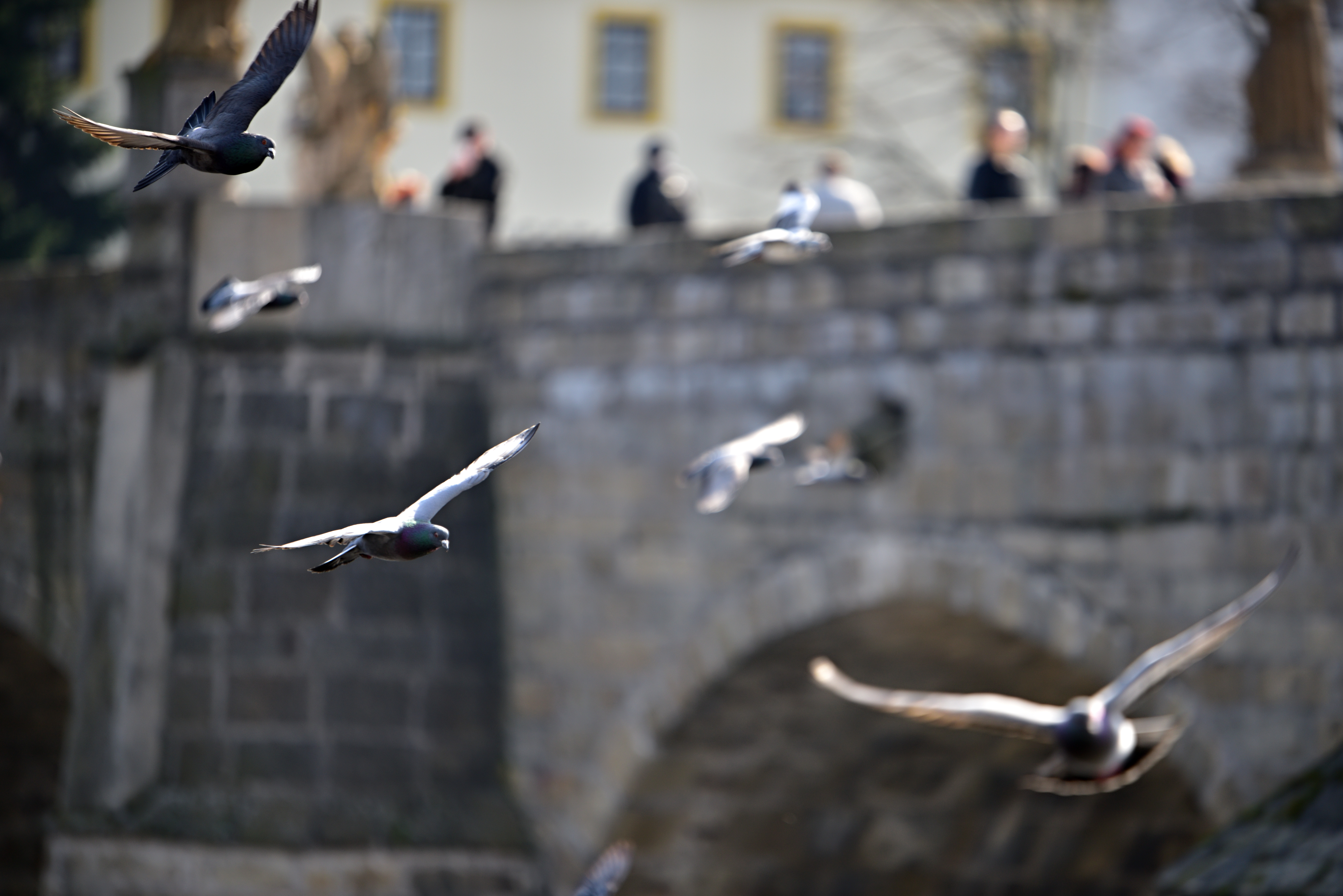 Jak rychlost, tak i spolehlivost správného a rychlého zaostření je dána jak ostřícím mechanismem fotoaparátu (jiná rychlost ostření bude u D3100 a jiná u D5), tak i schopností motorku objektivu dostat čočky co nejrychleji do správné pozice. Objektiv jsem testoval na fotoaparátu Nikon D810, tak i na fotoaparátu Nikon D500, který používá stejný systém ostření jako vlajková loď Nikon D5 a jistě v tak v hodnocení rychlosti ostření objektiv nijak nebrzdil. A samozřejmě, zvláště u rychle se pohybujících objektů, hraje velkou roli nastavený systém ostření (jednorázové, průběžné, skupinové, bodové, na nejbližší objektiv, 3D atd.). Nejprve snímky z D810, režim AF-C, 3d, typ stabilizace 2. Všechny snímky jsou záměrně pořízeny na clonu 2.8, aby se případná chyba zaostření neskryla do hloubky ostrosti - též také proto, že bylo nutné používat krátké časy - on ten racek je docela rychlá potvora :) Výřezy opět odpovídají zvětšeninám 120x180 cm: