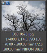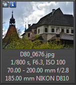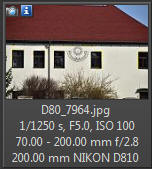 A jak s telekonvertorem? Měl jsem možnosti zkusit pouze konvertor Tamron 1,4x (TC-X14). Jak je již v tabulce výše uvedeno, u plnoformátových snímačů se po nasazení konvertoru změní ohnisko ze 70-200 na 98-280 mm, Srovnání přiblížení konvertoru 1,4 u plnoformátových snímačů u DX snímačů to bude odpovídat posunu ze 105 - 300 na 147 - 420 mm (přepočet 1,5 pro Nikon, pro Canon to bude nepatrně více), nejnižší nastavitelná clona je ve všech případech 4, tedy úbytek o 1 EV. Srovnání přiblížení konvertoru 1,4 u DX snímačů Telekonvertor si kupujeme především tehdy, když chceme ohniskovou vzdálenost prodloužit zejména na nejdelším ohnisku. Tomu jsem také přizpůsobit výše uvedené 2 obrázky - pro představu to bude jistě dobré. Pokud uvažujete o pořízení konvertoru 1,4x, tak je třeba před investicí zvážit jejich přínos. Ano, přiblíží, ale otázkou je, o kolik. Lépe řečeno, zda stejného efektu nelze dnes dosáhnout prostým výřezem. Tuto úvahu je třeba dát do přímé souvislosti s rozlišením snímačů. Pokud máte Nikon D810 s 36 mil. bodů, a uděláte v počítači výřez odpovídající telekonvertoru, zůstane vám stále pěkných 25 mil. bodů. Když uděláte totéž u fotoaparátu s rozlišením 12 mil. bodů, zůstane vám už jenom cca 8,5 mil. bodů, což může být pro některé účely již málo. Uvádím to hlavně proto, že každý telekonvertor více či méně zhoršuje optické vlastnosti objektivu. U telekonvertoru 2x se již jedná o jiná čísla, nehledě k tomu, že v hledáčku vidíte přiblížený obraz. Často tak může být zakoupení fotoaparátu s DX snímačem také řešením - získáte také přes 20 mil. bodů, zůstane zachována světelnost objektivu. Nás bude ale nejvíce zajímat kvalita kresby bez a s telekonvertorem. Fotoaparát Nikon D810, konvertor Tamron 1,4x, z ruky, stabilizace na objektivu v režimu 1, NEF, převod do JPG 95% kvality: