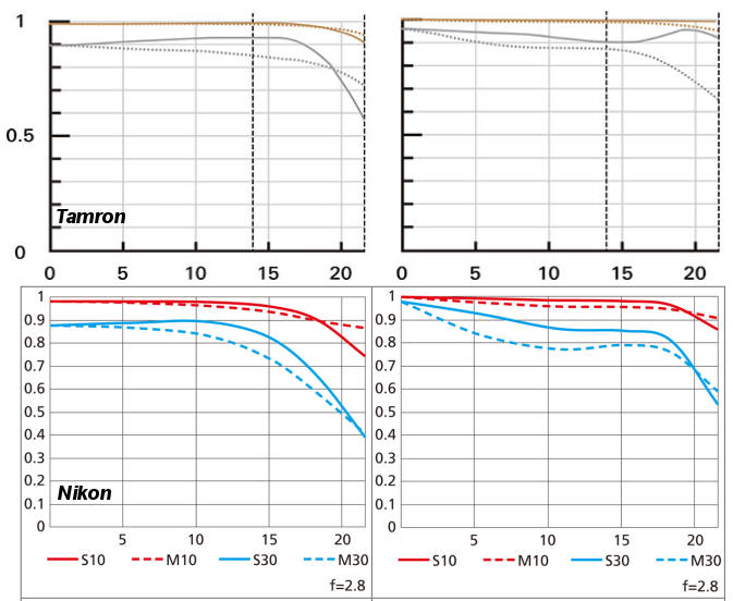 Závěr: U Tamronu je aberace je naprosto minimální, u většiny snímků neznatelná - výborný výsledek, aberace vám u tohoto objektivu snímky určitě nezkazí. Nikon je na tom srovnatelně. Takže výborný výsledek u obou.