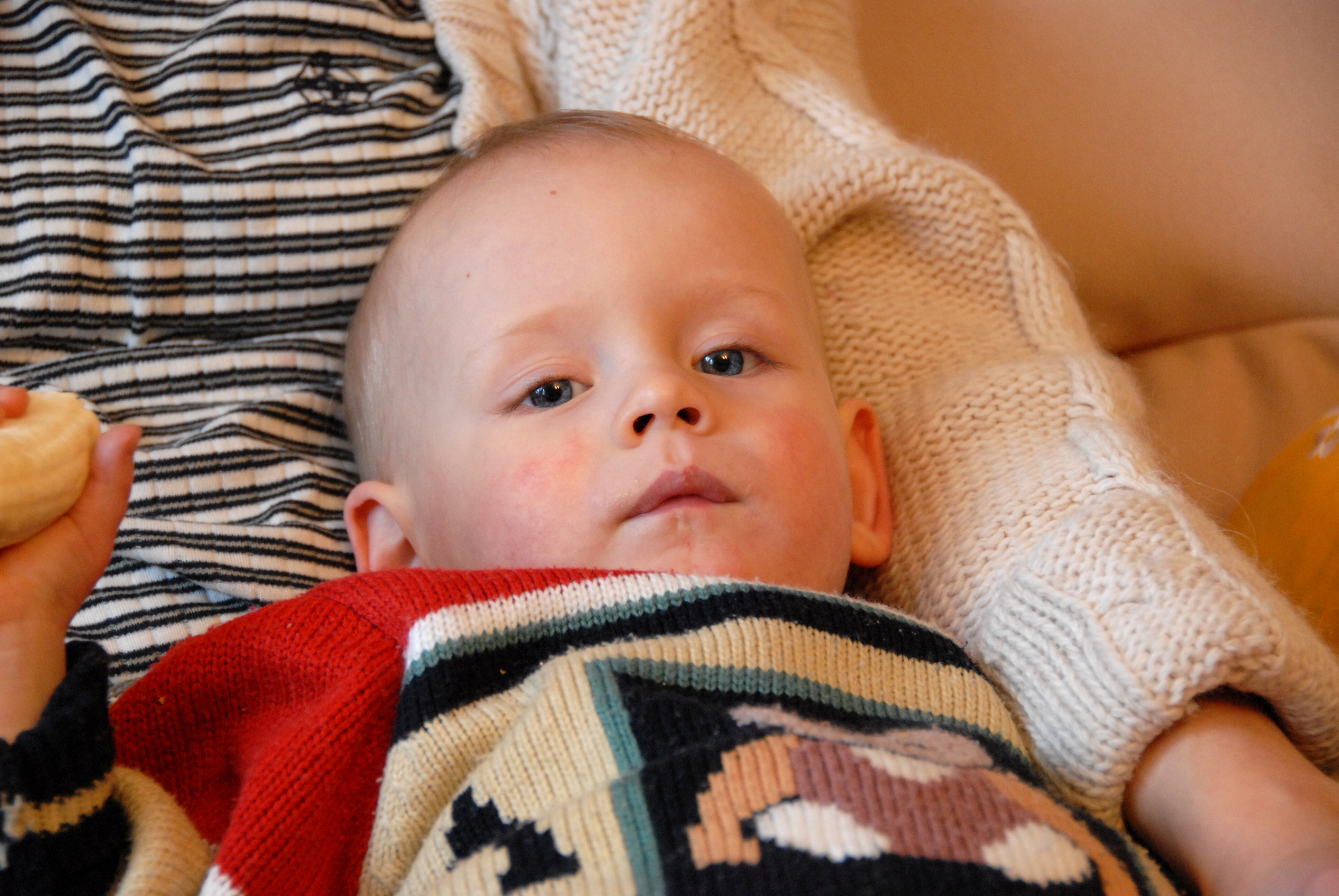 V uvedeném případě byla situace ztížena tím, že fotografovaný objekt byl dosti pohyblivý. Pokud se vyskytuje v některých částech obrazu neostrost, je způsobena malou hloubkou ostrosti a (nebo) pohybovou neostrostí objektu - pokud si všimnete svetru, zjistíte, že je přijatelně ostrý. Pokud tedy budete s tímto objektivem fotografovat subjekty nepohyblivé, při trochu jisté ruce můžete skutečně s technologií VR II tohoto objektivu pořídit záběry, na které by bylo bez stabilizace nutné použít blesk nebo stativ. Stabilizace dostává u tohoto objektivu jedničku s hvězdičkou.