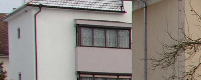 V těchto konkrétních podmínkách se jeví objektiv 18-200VR ve středu obrazového pole jako ostřejší, zatím na okrajích je jeho ostrost nepatrně nižší a jeví o málo vyšší sklon k aberaci, který v tomto případě je zvýrazněn sníženou ostrostí.