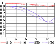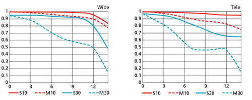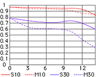 MTF charakteristiky objektivu Nikkor 18-70 (pro porovnání)