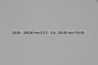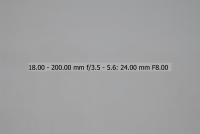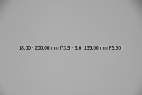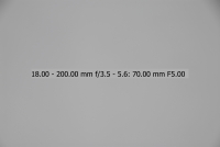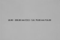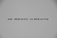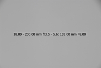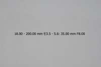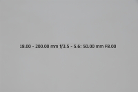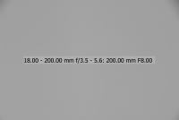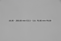 Většina uživatelů fotoaparátů Nikon je pravděpodobně vybavena objektivem Nikkor 18-70/3.5-4.5, proto jsem si jej vybral jako porovnávací pro tento objektiv na fotoaparátu Nikon D200/D2x. Testování bylo provedeno na venkovní téměř bílé zdi. Nejprve tedy objektiv 18-200 VR - testován při plně otevřené cloně (v závislosti na ohniskové vzdálenosti jsou to clony od 3,5 u 18 mm do 5,6 u 200mm), při cloně 8 a při cloně 16. Orámované snímky jsou nejlepší (volba provedena podle histogramu originálních snímků - čím má histogram menší rozptyl, tím menší vinětace). Ohniskové vzdálenosti uvedené v obrázcích NEJSOU přepočítány koeficientem 1,5 na kinofilm, jedná se tedy o skutečnou stupnici na objektivu.