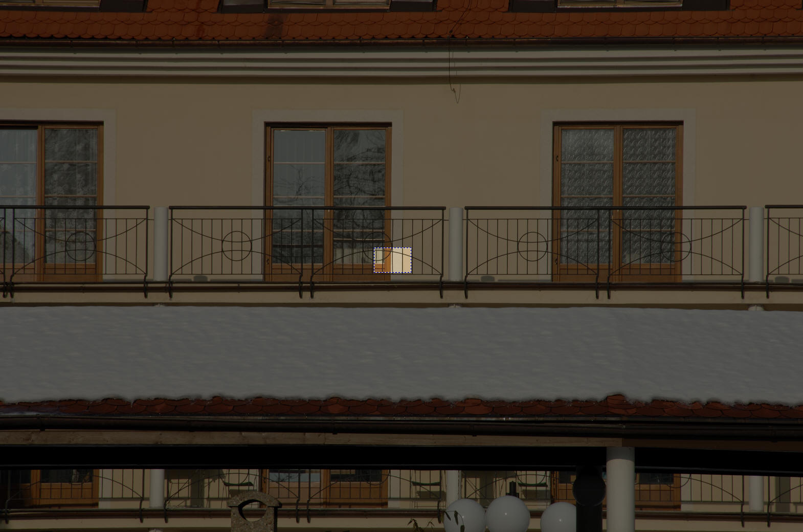 Třetí snímek - bodově zaostřeno při ohnisku 18 mm, přidržena spoušť, změna ohniska na 200 mm, expozice.