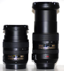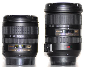 Kvalitní pevná skla jsou drahá, objemná a ve svém součtu několikanásobně těžší než jejich zoom-souputníci a tak kvalitní objektivy tohoto rozsahu vítáme. Snad nejrozšířenější Nikon-zoom (tedy objektiv s proměnlivou ohniskovou vzdáleností), je tzv. "setový" objektiv AF-S DX Zoom Nikkor 18-70mm f/3,5-4,5G IF-ED, který je dodáván většinou k zrcadlovkám D70 a D70s. K tomuto objektivu má řada fotografů výhrady ohledně zkreslení, vinětace apod., ale jedno mu upřít nejde – velmi, velmi dobré parametry v porovnání cena/výkon. Snad i vlídné přijetí tohoto objektivu fotografickou veřejností bylo jedním s důvodů, proč se Nikon pustil do konstrukce objektivu s u něj dosud nevídaným rozsahem 11,1! Objektiv patří do skupiny "DX" objektivů, tj. objektivů, které jsou speciálně konstruovány pro velikost obrazového snímače typu APS-C (což jsou všechny digitální zrcadlovky od Nikonu). Tyto objektivy sice prakticky nelze použít na "kinofilmových" přístrojích, ale právě proto, že svým zobrazením pokrývají menší plochu, mohou být ve srovnání se svými kinofilmovými brášky při stejné světelnosti výrazně menší a lehčí. Navíc jsou již přímo pro digitální snímače konstruovány s ohledem na kolmost dopadu paprsků na digitální snímač – nejen z tohoto důvodu neposkytují proto někdy starší objektivy pro kinofilmové přístroje na digitálních zrcadlovkách nejlepší výsledky.