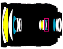 Konstrukce objektivu: Počet čoček/počet skupin 16 / 12 (2x ED, 3 asférické prvky)
