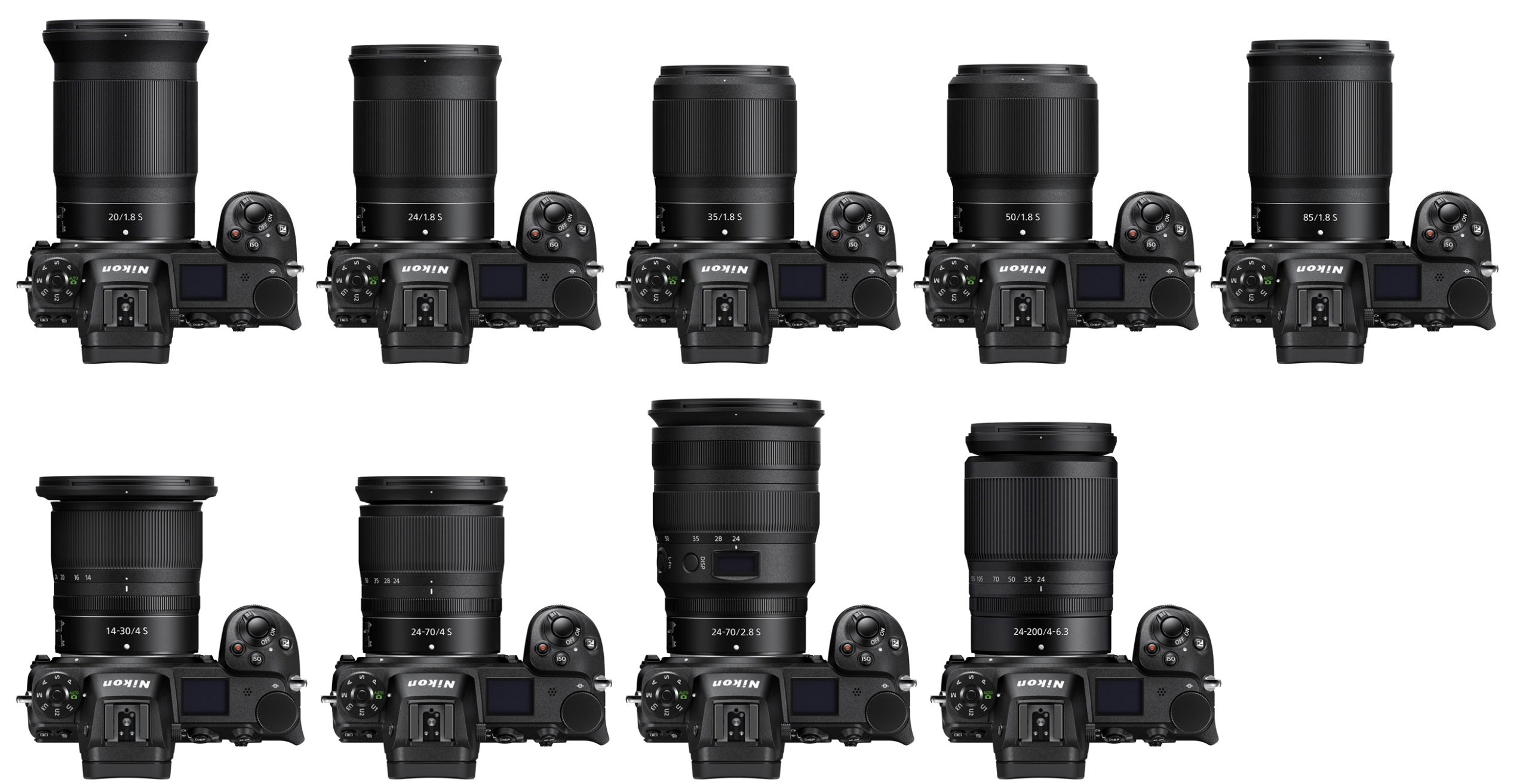 Ale zpět k plnoformátovým objektivům pro Z6 a Z7 - na následujícím přehledu se můžete podívat na porovnání velikosti většiny dosavadních objektivů: Jaké máte alternativy na českém trhu? No, věru, moc jich není.