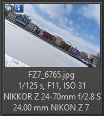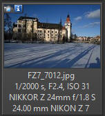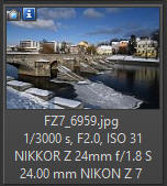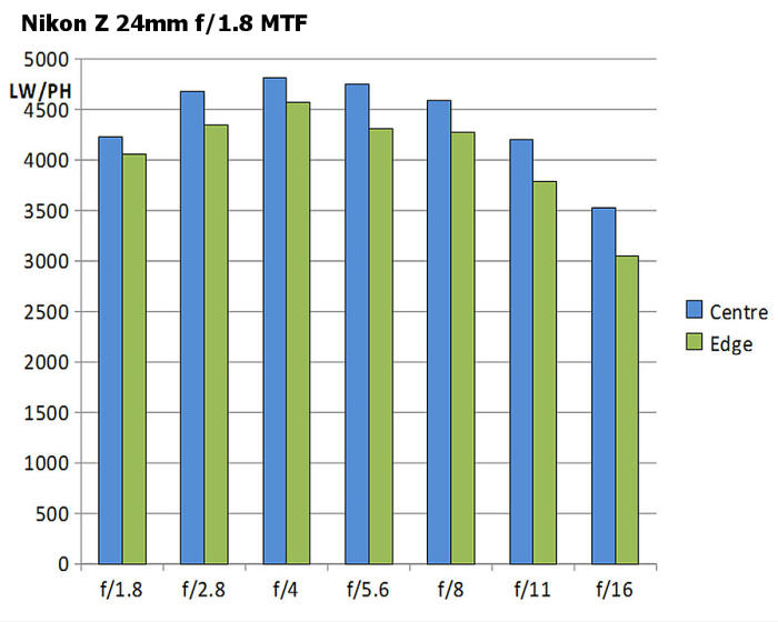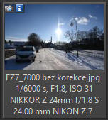 Podívejme se na MTF křivky: Teoreticky nevypadají rozdíly v ostrosti mezi oběma objektivy Nikkor 1.8 nijak dramaticky (s výjimkou okrajů obrazu). Křivky u objektivů se světelností 1,4 již tak pěkně nevypadají, ale nenechte se mýlit, na cloně 1.8 by to mohlo vypadat jinak, ovšem takové grafy k dispozici od výrobců nejsou. Reálné hodnoty zjištěné měřícím zařízením Imatest konkrétního kusu objektivu (jiné výrobní číslo než zde testovaný): Pro srovnání ještě graf ostrosti objektivu Z 24-70/2,8 S na ohnisku 24 mm Fotoaparát Nikon Z7 (Zpracování v Nikon Capture NX-D: Picture Control STANDARD, QUCK SHARP 0, SHARPENING 4, M-RANDGE SHARP +2, CLARITY +1, D-LIGHT NORMAL, VIGNETE control high, ostatní hodnoty 0, Lateral Color Aberration - ON, Axial Color Aberation - ON (50), Auto Distortion Control - ON, AF-S, RAW 12bit, převod do JPG v programu Capture NX-D. Bezvětří, pevný stativ. Výřez 1:1 odpovídá tiskové velikosti fotografie cca 120 x 160 cm!!! Rozhodl jsem se tento objektiv porovnat s objektivem Nikon Z 24-70/2.8 S na stejné ohniskové vzdálenosti, tedy 24 mm (růžově podbarvená pole v tabulce níže). Převod všech snímků v programu Nikon Capture NX-D z formátu RAW do JPG 95% kvalita.