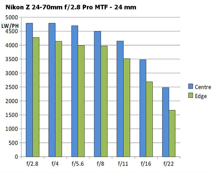 Závěr: Určitě je to jeden z nejlepších objektivů na tomto ohnisku. Z hlediska ostrosti je na tom kupodivu objektiv Nikon Z 24-70/2,8 S na ohnisku 24 mm ještě trochu lépe na okrajích. Na fotografii velikosti 30x40 cm ale rozdíl asi nepoznáte.