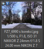 Závěr: Proti objektivu Z 35/1.8 S je to velký pokrok - podání měkké, bez rušivých struktur. Sice se stále, ale podstatně méně, projevuje zeleno-fialový nádech aberace v neostrých částech obrazu na nejnižších clonách (nejde automaticky odstranit), ale jinak nemám námitky, líbí se mi.