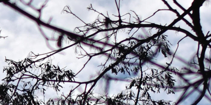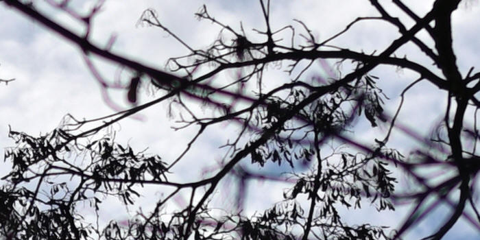 Aberace, pokud je skutečně velká, nejde v editoru zcela odstranit. Projevuje se nejvíce na nejnižším clonovém čísle a na rozmezí tmavých a světlých částí obrazu ve formě většinou fialových nebo zelených obrysů (nejvíce na okrajích) - učebnicovým příkladem jsou právě odlesky na tmavé vodní hladině, jemné větvičky stromů nebo odlesky na chromovaných předmětech. Automatické odstranění aberace provedeno v programu Nikon Capture NX-D s úrovní Lateral i Axial "50". První výřez v pořadí - bez odstranění aberace, druhý výřez s odstraněním aberace.