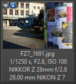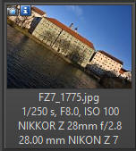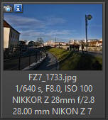 Z grafů je patrné, že tato "palačinka" by na tom měla být s ostrostí ve středu obrazu lépe než Z 40/2, protože pokles ostrosti a kontrastu je směrem k okrajům snímku méně strmý - zároveň je třeba si uvědomit, že všechny grafy jsou zpracovány pro nejnižší možné clonové číslo každého objektivu - takže objektiv 28/2,8 by měl být správně srovnáván s objektivem 40/2,8 na clonovém čísle 2,8, kde by rozdíly ve prospěch 40/2,8 byly podstatně menší. Nicméně není příliš obvyklé, aby objektiv s kratší ohniskovou vzdáleností měl lepší průběh ostrosti od středu ke krajům. Fotoaparát Nikon Z7, zpracování
