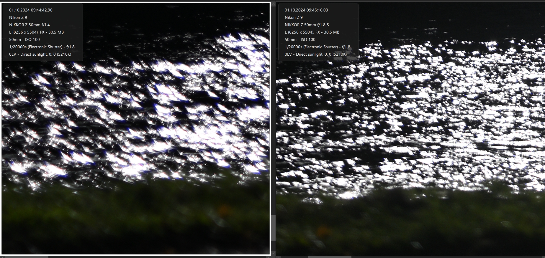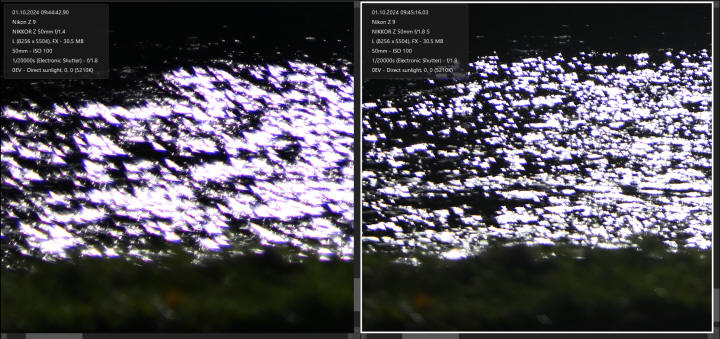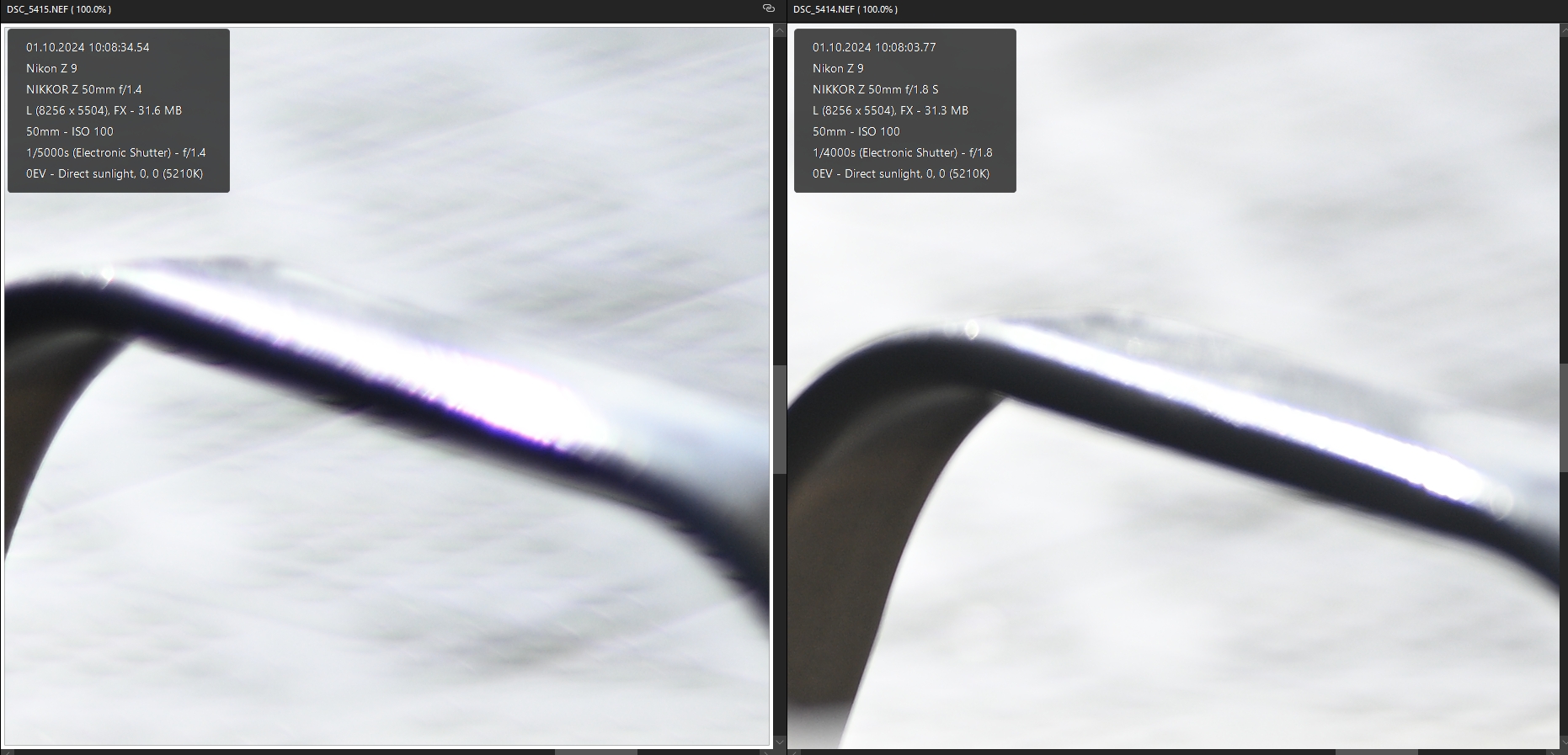 následujících dvojicích snímků je porovnání Nikonu Z 50/1.4 (vlevo) a Nikonu Z